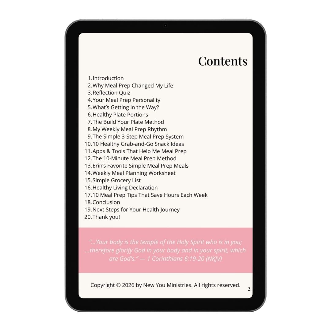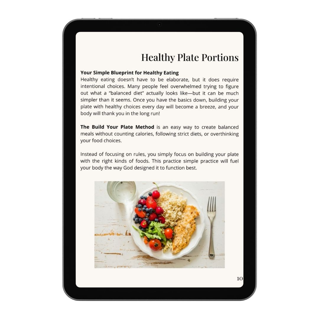 This guide gives you a clear weekly system and an easy-to-follow process so nourishing meals become a natural part of your routine—not just another task on your to-do list. My hope is that it helps you build simple eating habits that support the healthy, purposeful life God has for you.